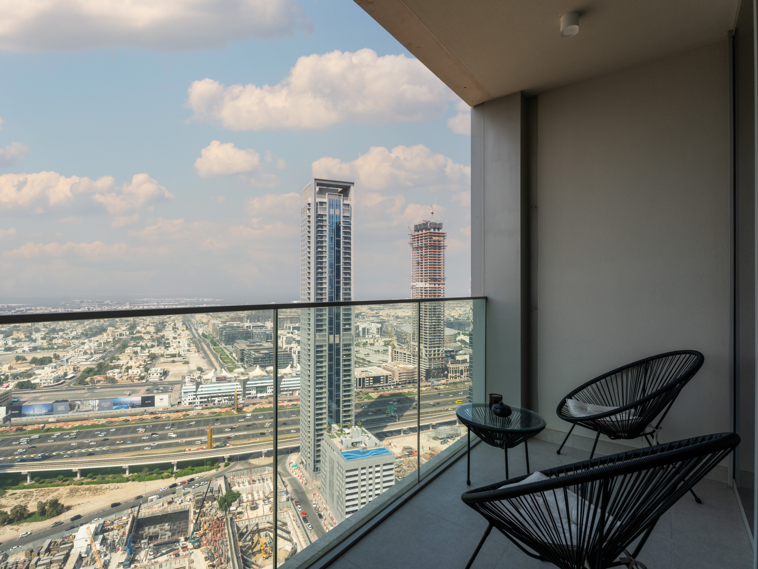 • Spacious balcony with panoramic views of the iconic Dubai skyline, Burj Khalifa, and Dubai Opera