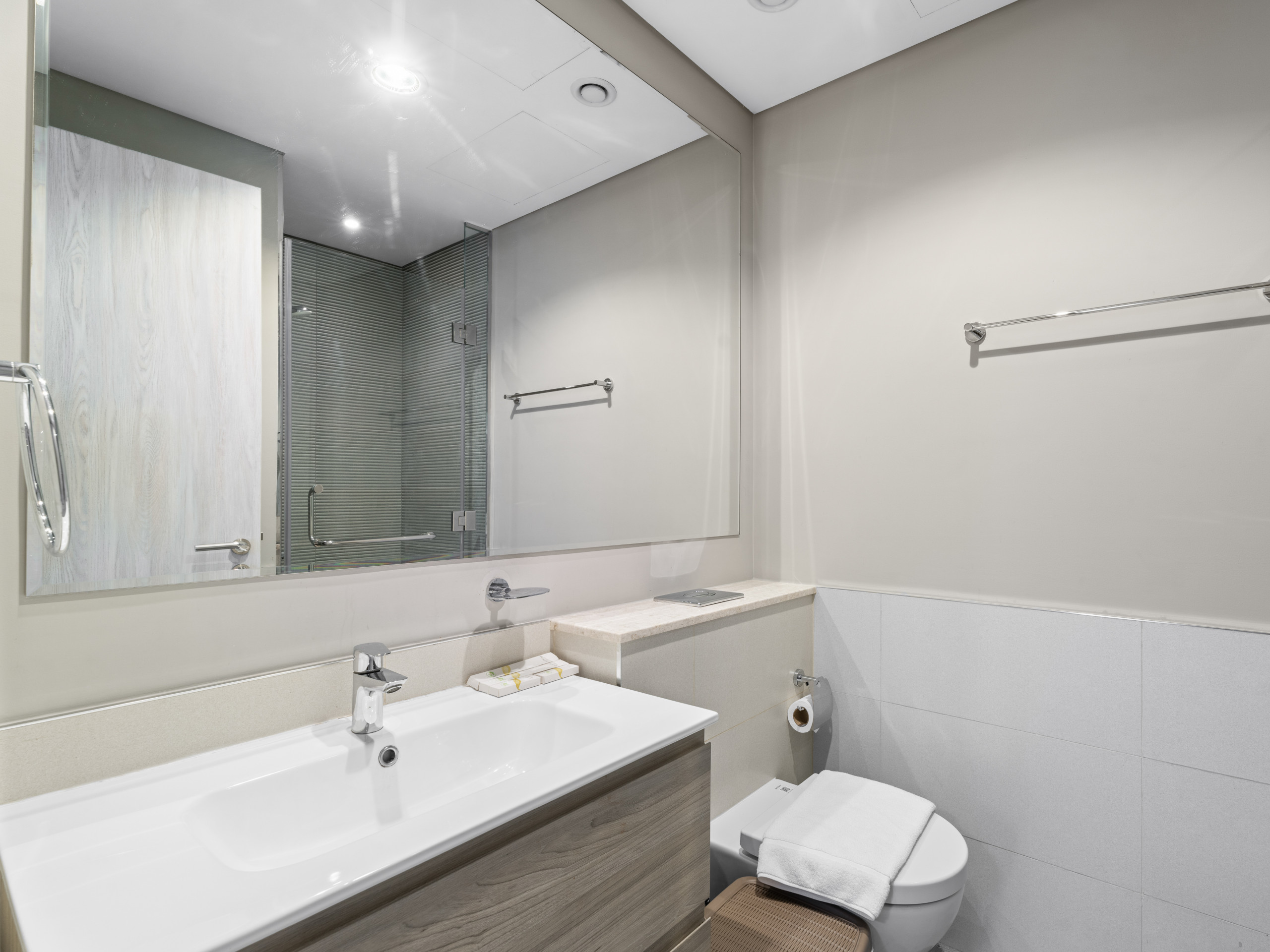 * Spotless bathroom with walk-in shower and quality amenities